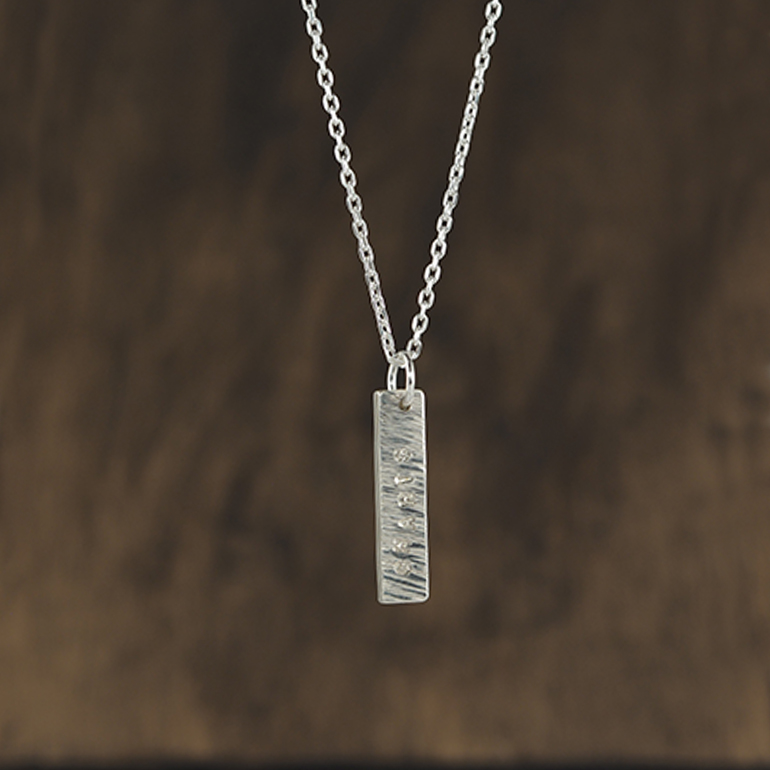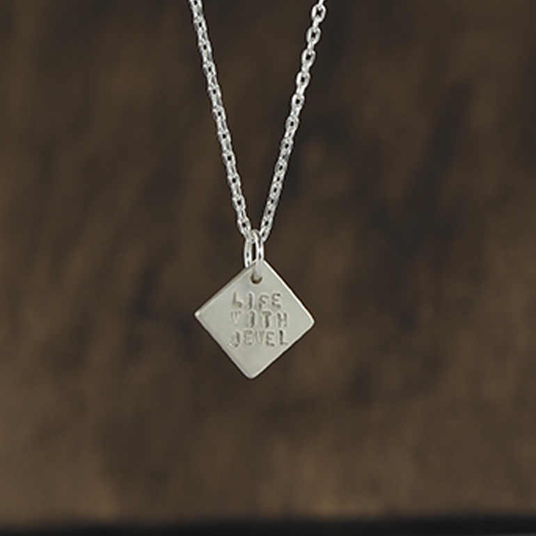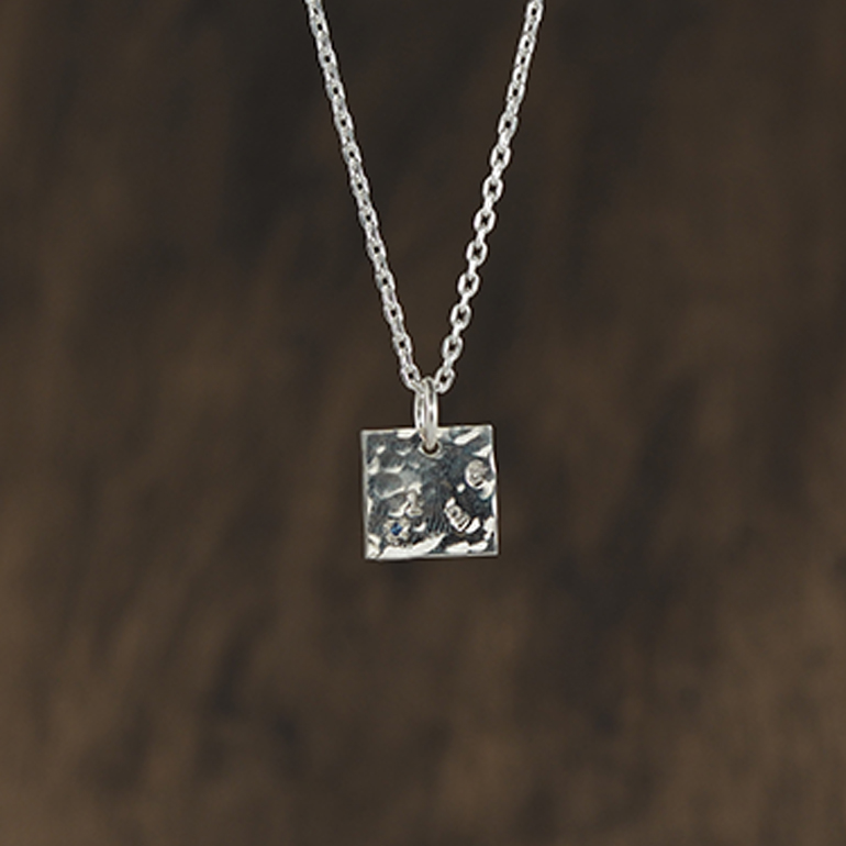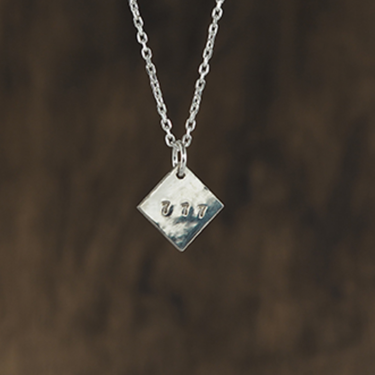 ペンダントにイニシャルや記念日など英数字を専用の工具で叩いて文字を無料で入れることが出来ます。練習台があるので事前にそちらで練習していただいてからペンダントに刻印をしていただきます。