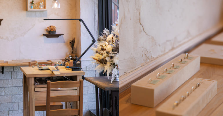 福岡県の南西に位置する久留米市で手作り指輪とオーダーメイドを手掛ける専門店〈CHARISᶜᴿ⁸〉。手作り指輪のワークショップうつくしみが最初にスタートした地でもあります。久留米店では手作り指輪はもちろん、バングルやネックレスなど色々な手作り体験をご用意しており、週末はたくさんのお客様で賑わっています。 愛するふたり、家族、友人、がんばっている自分へ、日々を愛み感謝する。愛み〈うつくしみ〉とは日々愛情いっぱいに大切に過ごすことです。うつくしみを込めたジュエリーを自分で作ってみませんか。